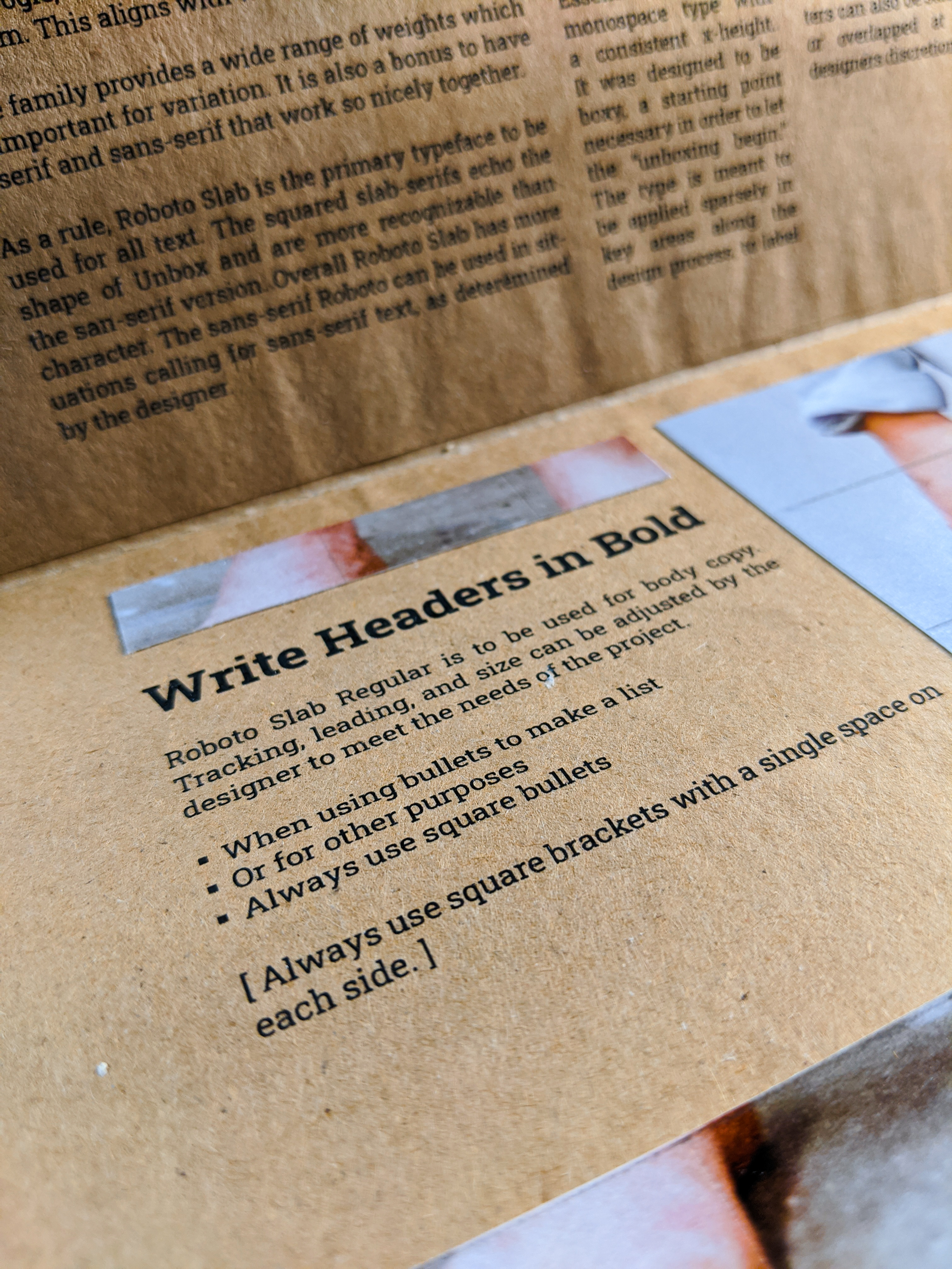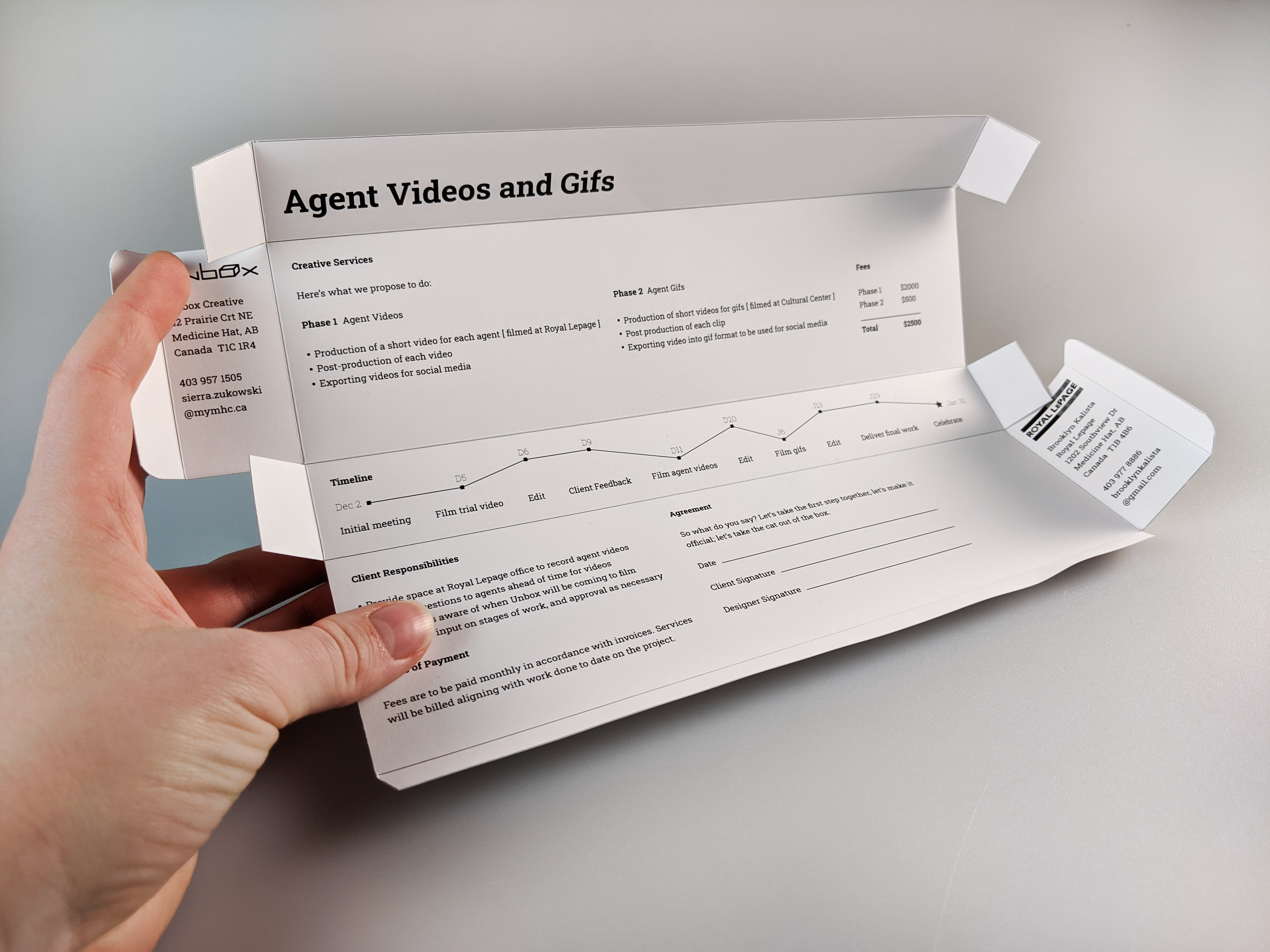 Unbox Creative is a brand identity showcasing my design thinking methodology. Deliverables include a style guide, contract, and branded notebook.